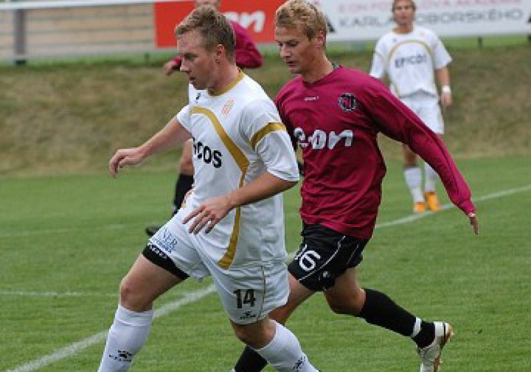 V Hlavici rádi vzpomínají na minulý podzim, kdy tým složený z valné většiny z poloprofesionálů, kteří mají současně s hraním fotbalu ještě civilní zaměstnání jen tak mimochodem vyřadili z poháru na penalty Mladou Boleslav. K senzačnímu postupu přispěl i protřelý mazák Jan Flachbart (na snímku při bránění kapitána Mašáta - pozn. aut.), jenž se jako jediný zmíněné charakteristice vymykal - ze štací ve Spartě či Petrohradu má vyděláno. "Kvůli rodině jsem se rozhodl, že vezmu jen takové angažmá, za kterým budu moct dojíždět z Mladé Boleslavi," vysvětlil zkušený univerzál. Tým z vesnice v Podještědí nakonec vypadl až v osmifinále s prvoligovou Plzní.