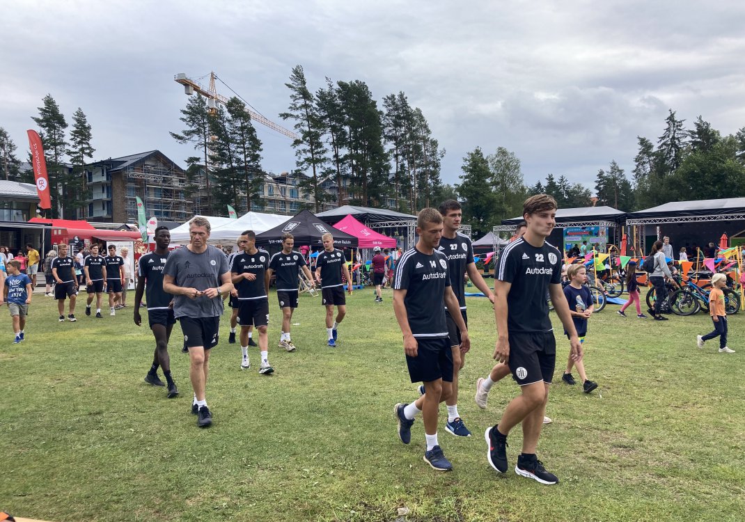 Ukázka tréninku, který měli na starost trenéři Jindřich Tichai a Jiří Kladrubský, odstartovala výběhem kolem lipenské vodní nádrže. Následovalo protažení a cvičení s míčem, kterého se zúčastnili také nejmenší příznivci černobílého klubu. Další program narušil hustý déšť.