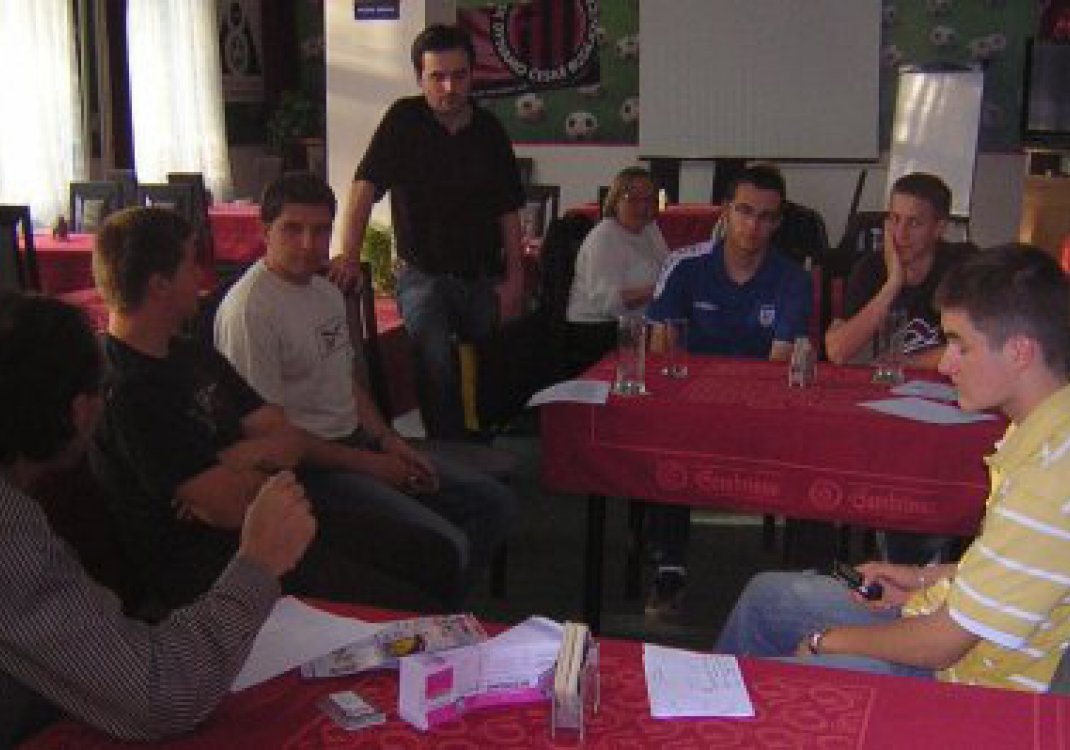 Na první schůzce fanklubu se sešly téměř dvě desítky příznivců, na snímku je zachycena jedna část diskutujících.