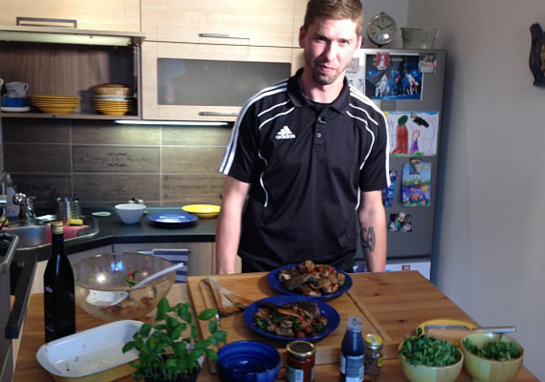 Ani ne. Teď probíhala soutěž MasterChef, ale to by nebylo pro mě. Já nejsem typ, který by striktně dodržoval recepty. Hodně improvizuji. Doufám, že mě nikdo nepřihlásil. Nebyl by na to ani čas. Radši bych trénoval a vrátil se na hřiště, než vařil.