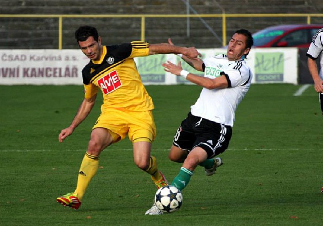 Jihočeši nastoupili v Karviné znovu se dvěma útočníky, ale byli to domácí, kterým patřil úvod utkání. Hned v první minutě se v obrovské šanci ocitl Mišinský, ale vysoko překopl. Karviná pokračovala v tlaku, po deseti minutách znovu pálil Mišinský, ale jeho přízemní střelu zpoza vápna brankář Křížek bravurně vyrazil. Pak se hra uklidnila a zbytek poločasu už patřil černobílým.