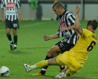 Dynamo začalo zápas s odhodláním, které přetrvávalo v prvních minutách, když si vytvořilo hned několik akcí. Po chvíli vystrčila růžky také Sparta, když ve 3. minutě zahrozil Kulič. Jihočeši se do útoku prakticky nedostávali, a když ano, tak jen sporadicky. V 11.minutě si brazilský záložník Hudson obešel sparťanského stopera Kučeru, za kterého musela hasit požár až sparťanská jistota – stoper Řepka. Od té chvíle začali úřadovat Letenští. V 17.minutě po faulu budějovického Riegla nebezpečně střílel z přímého kopu Petr Voříšek a o chvíli později sparťanský útočník Slepička po Kadlecově centru hlavičkoval do rukavic pozorného Kučery. Na opačném pólu hřiště měl velkou šanci domácí Sedláček, když se probíjel k odraženému míči, ale zastavil ho Řepka. Ve sportu platí nedáš-dostaneš, a dnes to platilo i na Střeleckém ostrově. Sparťané udeřili hned z následného protiútoku. Kulič vyslal ze strany pas napříč pokutovým územím, nabíhající Došek mu vrátil balon z ostrého úhlu zpět a bývalý hráč Dynama otevřel skóre zápasu – 0:1. Hned v zápětí se sparťanští fanoušci, kteří se do srdce jižních Čech dostavili, radovali po druhé. Agilní Kadlec se dostal mezi budějovické stopery a rozčeřil síť za Kučerovými zády podruhé – 0:2. Dynamo po druhé brance hrálo jako opařené a vysvobodit je mohl jedině závěrečný hvizd rozhodčího, jenž by ukončil první poločas. Ještě než se tak stalo, si při chuti hrající sparťané vytvořili pár menších šancí.