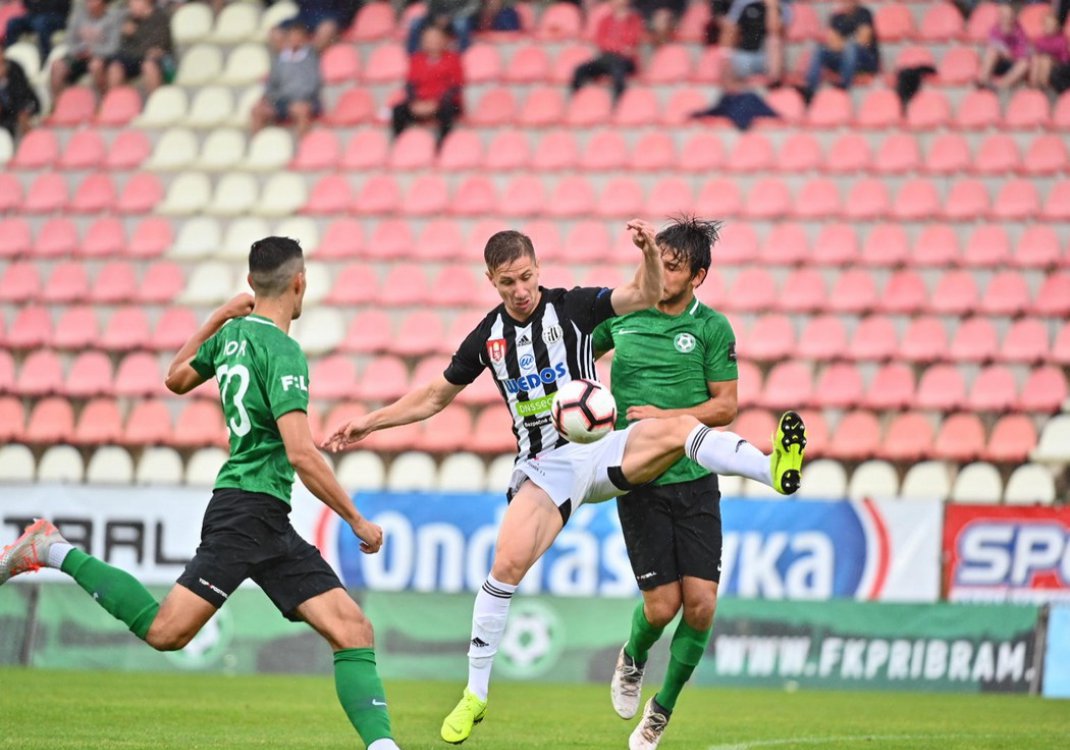 Jihočeši se u Litavky museli obejít bez zraněného Provoda, sestava domácích byla vcelku očekávaná. Opatrných sedm minut rozčísli příbramští fotbalisté. Nejprve pálil Alvir ze střední branku minul, při další akci ale Kladrubský špatně vystoupil, Marco Alvir si ve vápně obhodil Pavla Nováka a zblízka propálil Staňka. Povzbuzení zelenočerní měli chuť, Škoda ale na mokrém terénu brankáře Dynama nepřekvapil. O chvíli později nastal ve vápně Jihočechů velký zmatek, míč se odrazil k Alvirovi, jemuž ale pod nohy rychle skočil Staněk.