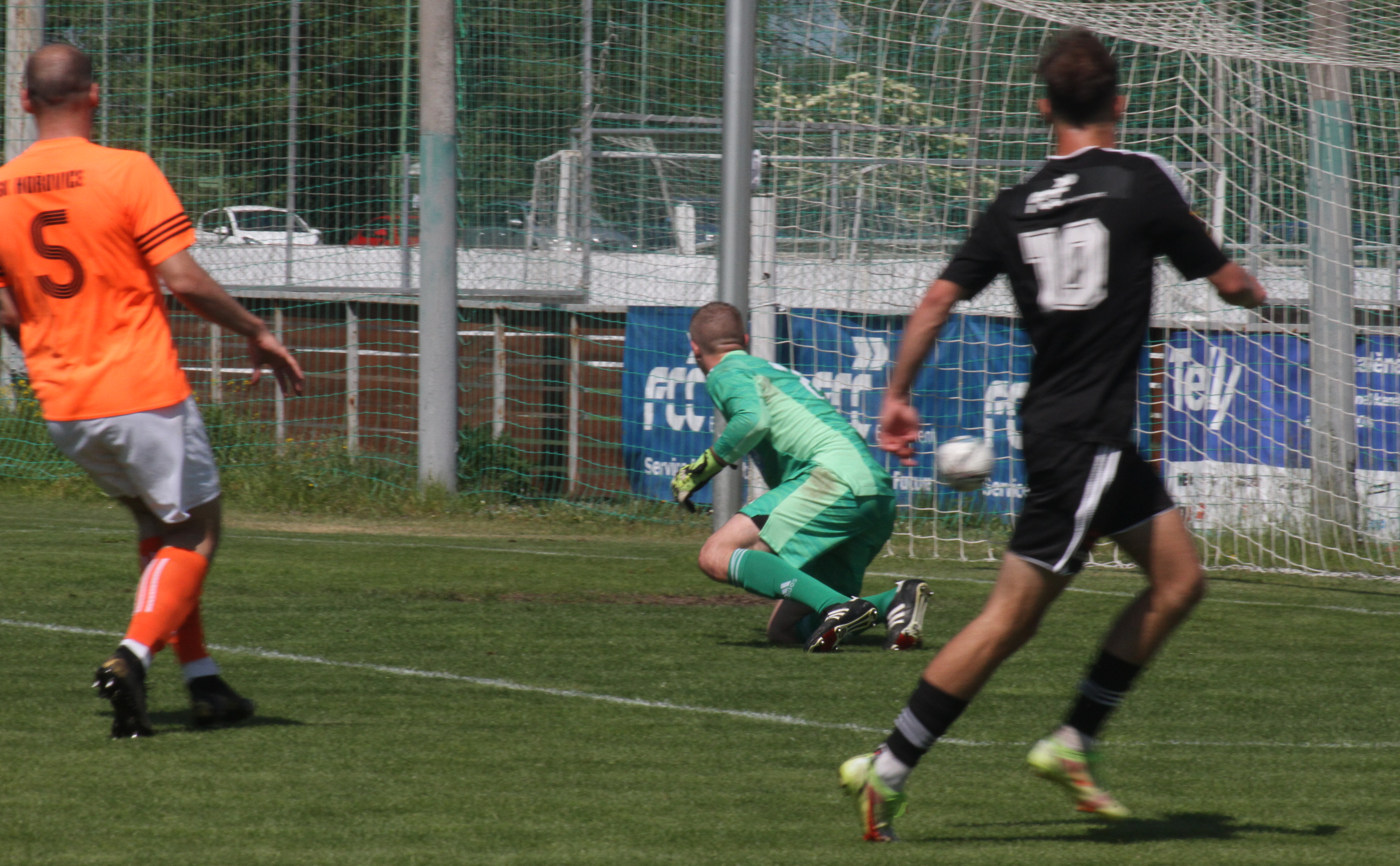 Dvě nuly na ukazateli skóre vydržely svítit jen devět minut. Robin Polanský, který hrál s velkou chutí a patřil k nejlepším hráčům, dostal přesnou přihrávku do otevřené obrany a rychlý kontr zakončil střelou k tyči. Po půlhodině bránící Středočeši faulovali v šestnáctce a uzdravený Jakub Matoušek potvrdil z penalty pověst střelce.