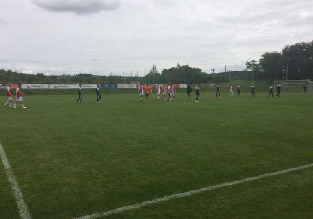 Aktivněji do úvodního kola ligy vstoupila Slavia. Měla územní převahu, i k zakončením se dostávala častěji. A zároveň i otevřela skóre po nepřehledné situaci v deváté minutě. Balon dostal krásně za beky Marco Lauricella, vystřelil, Luksch jeho ránu ztlumil a míč skákal do brány. Zřejmě již za brankovou čárou ho vykopl ven Mikuláš Jáša a sudí po poradě uznali gól – 0:1. Nadále měli ze hry více sešívání, ale domácí pomalu ale jistě hru srovnávali. S nepříjemným přímým kopem Kalouska si Přibyl ještě poradil. Ale v následující minutě vyrazil na útočný výlet stoper Mikuláš Jáša, šikovně si narazil, dostal se k míči před brankou a levačkou srovnal – 1:1. Jihočeši ožili, ale do konce poločasu už branka nepadla.