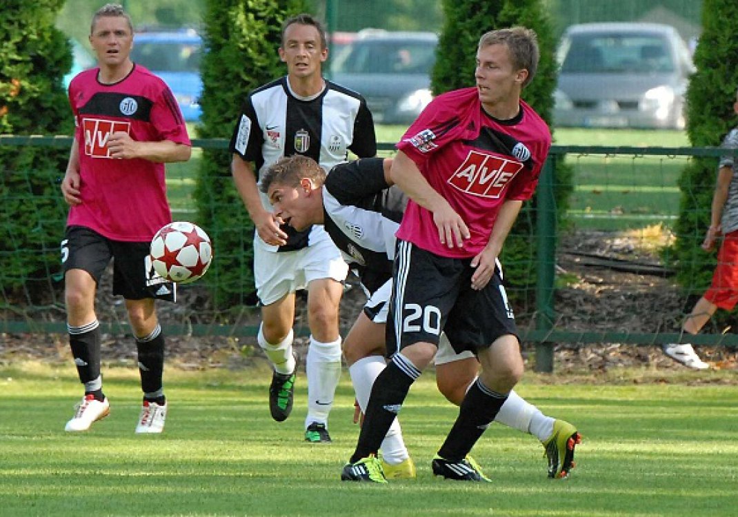 Po opatrném začátku se první osmělili domácí. Po čtvrthodině hry Jasanský posunul míč Ondráškovi, který svým centrem nalezl na zadní tyči zapomenutého Michala Petráně, a ten otevřel skóre. Inkasovaná branka Rakušany nakopla. Nejprve byl Aigner lehce přistrčen ve vápně Peckou, ale sudí Jílek penaltu neodpískal. Ani o chvilku později se hosté neradovali, Metzovu střelu z velké dálky zlikvidoval Kučera.