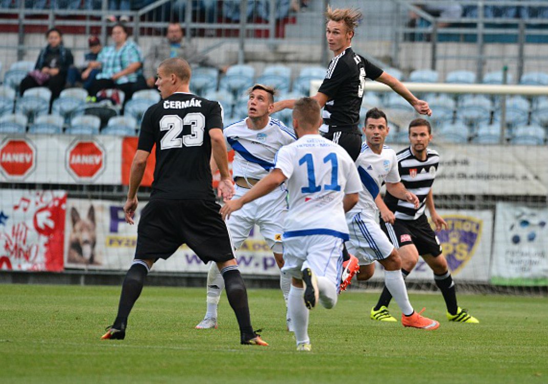 Radovat se z úvodní branky zápasu mohli domácí příznivci po deseti minutách hry. Kalod založil akci, předal míč Petru Benátovi, který přiklepl Michalu Klesovi. Pravý obránce Dynama se krásně uvolnil a prostřelil Štěpanovského – 1:0. Slezanům stačilo na vyrovnání jedenáct minut. Centr z levé strany od Tomáše Hykela našel hlavu Martina Slaninky, který šikovně usměrnil míč za Křížka – 1:1. Vrátit Dynamu vedení mohl hrotový útočník Kalod. Míč mu hezky sklepl Ivo Táborský a domácí útočník se rozmýšlel, co s míčem, ale nezvolil dobré zakončení. Přímý kop Táborského vedoucí branku nepřinesl, tudíž se šlo do kabin za remízového stavu.