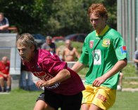 Svěřenci Františka Cipra si dnes zápas proti diviznímu celku velice užili a hned do prvního poločasu vstoupili s vysokým nasazením. Již ve 4. minutě vstřelil první gól Martin Vozábal, Černý utekl po levé straně a následně odcentroval před bránu. Vozábal si míč legantně zpracoval a střelou pod horní tyč otevřel skóre zápasu – 1:0. Hosté prakticky domácí téměř neohrožovali. Ve 23. minutě se ozval také velice aktivní Plichta, jeho rozjetá akce nevypadala vůbec špatně, míč si dvakrát za sebou vyměnil s Vozábalem. S míčem na kopačce se dostal sám před prachatického brankáře, jenže jeho střelu tečoval gólman na rohový kop. Černý rozehrál roh, přihrávku obdržel David Horejš a střelou do pravé šibenice zakončil na 2:0. Do 38. minuty si domácí hru hlídali, ale jejich ataky tvořilo více nepřesností a k vyloženějšímu zakončení se nedostali. Na 3:0 upravil ve 39. minutě Jaroslav Černý, jenž po povedené individuální akci Adamce potřetí překonal hostujícího brankáře. Do konce poločasu se ozval ještě Plichta, jeho střela mířila však těsně nad a skóre se tak nezměnilo.