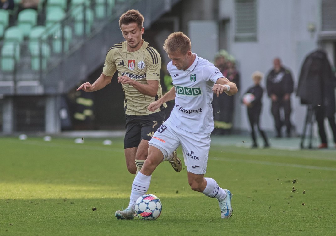 Úvod utkání vyšel jednoznačně lépe domácím. Karvinští byli od úvodních minut aktivní a především napadání domácích dělalo svěřencům Františka Straky velké problémy. Hned po sedmi minutách se dokonce měnilo skóre. Botos našel Filipa Vechetu, jehož rána ještě byla tečována Míkou přímo za záda Fendricha. Dynamáci se však dokázali po inkasované brance probudit a i oni přišli se zajímavými útočnými momenty. V patnácté minutě nacentroval Tischler, míč si našel Adediran, avšak svoji hlavičku poslal nad branku. O deset minut později se poté dostal do rychlého kontru Ubong Ekpai, českobudějovický záložník se ze strany hnal sám na Lapeše, ale svoji dělovkou pouze orazítkoval břevno domácí svatyně. Pravidlo nedáš dostaneš opět zafungovalo. V devětadvacáté minutě totiž Amar Memič zakroutil svůj centr až do sítě a Karviná vedla o dvě branky. A mohlo být ještě hůř o čtyři minuty, kdy si s míčem do vápna naběhl Ražnatovič a proti jeho zakončení se musel vyznamenat Fendrich. Nic se tak už do poločasu nezměnilo na karvinském dvoubrankovém vedení.